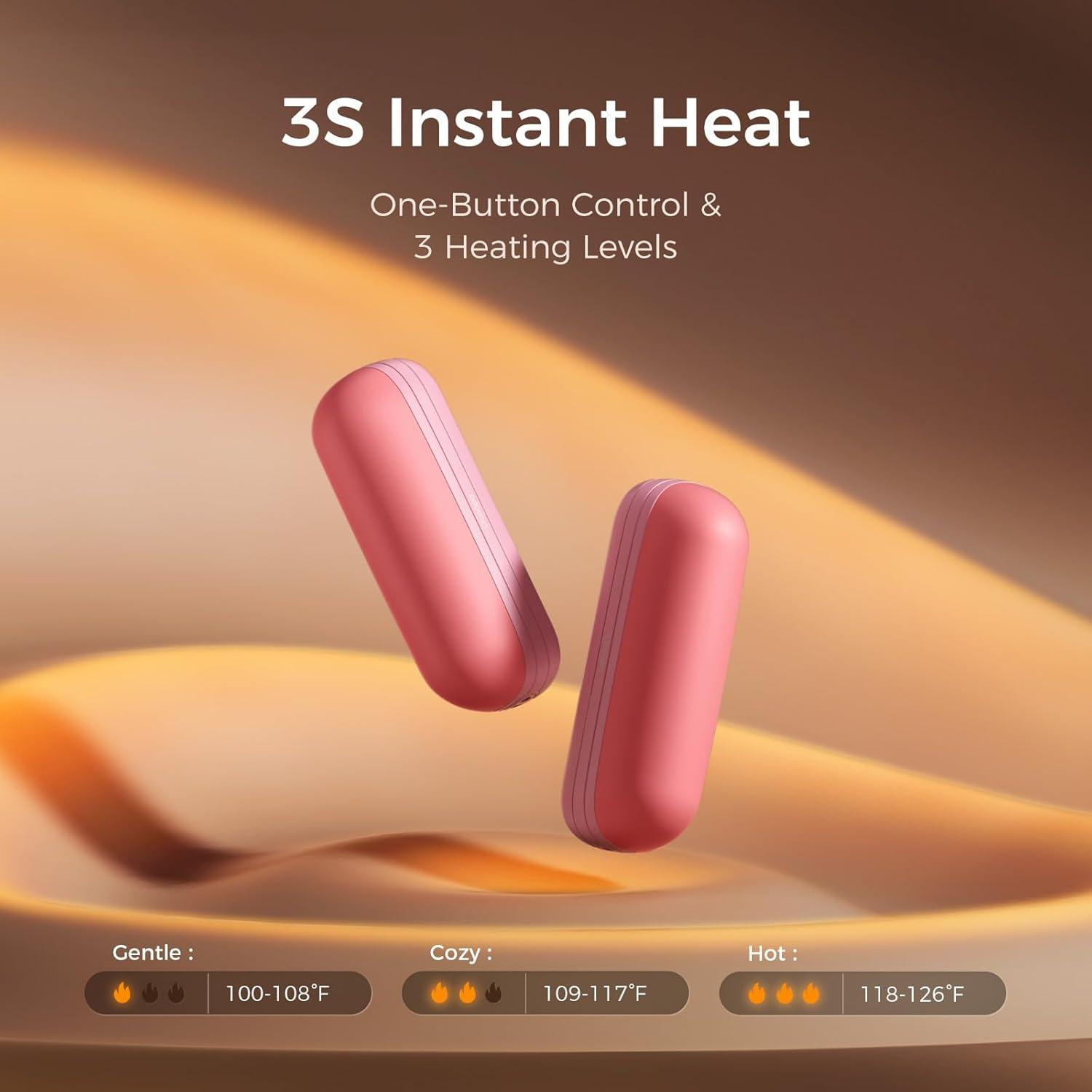 🌋Instant Heat, Lasting Warmth: Heat release in just 3 Seconds, 3 temperature settings up to 126 °F, Heat duration up to 4 to 6 hours; We offer a split USB-C charging cable, saving you charging time and allowing you to enjoy more warmth