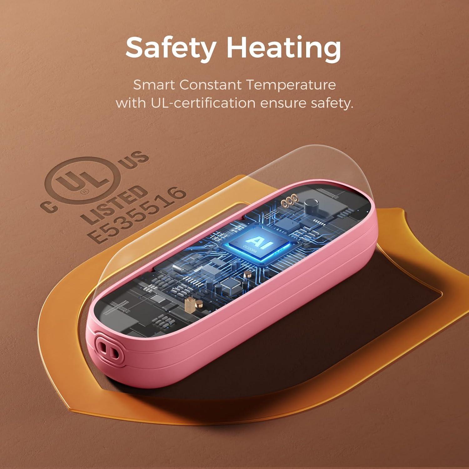 👊Safe and Reliable: The AI smart chip in our hand warmer conducts temperature monitoring checks at a rate of 1200 times per minute; Additionally, our hand warmer is UL certified (E535516) by Underwriters Laboratories Inc., ensuring safety and preventing overheating or short circuits