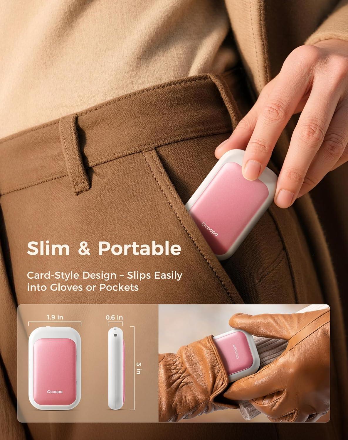 Ultra-Thin and Portable: The Ocoopa UT4 Young hand warmer is your perfect on-the-go companion, measuring just 0.6 inches thick and 30% lighter than similar models; It easily fits into gloves, pockets, and wallets, allowing you to enjoy warmth anytime, anywhere; Just snap it on and experience the convenience of the magnetic 2-in-1 design