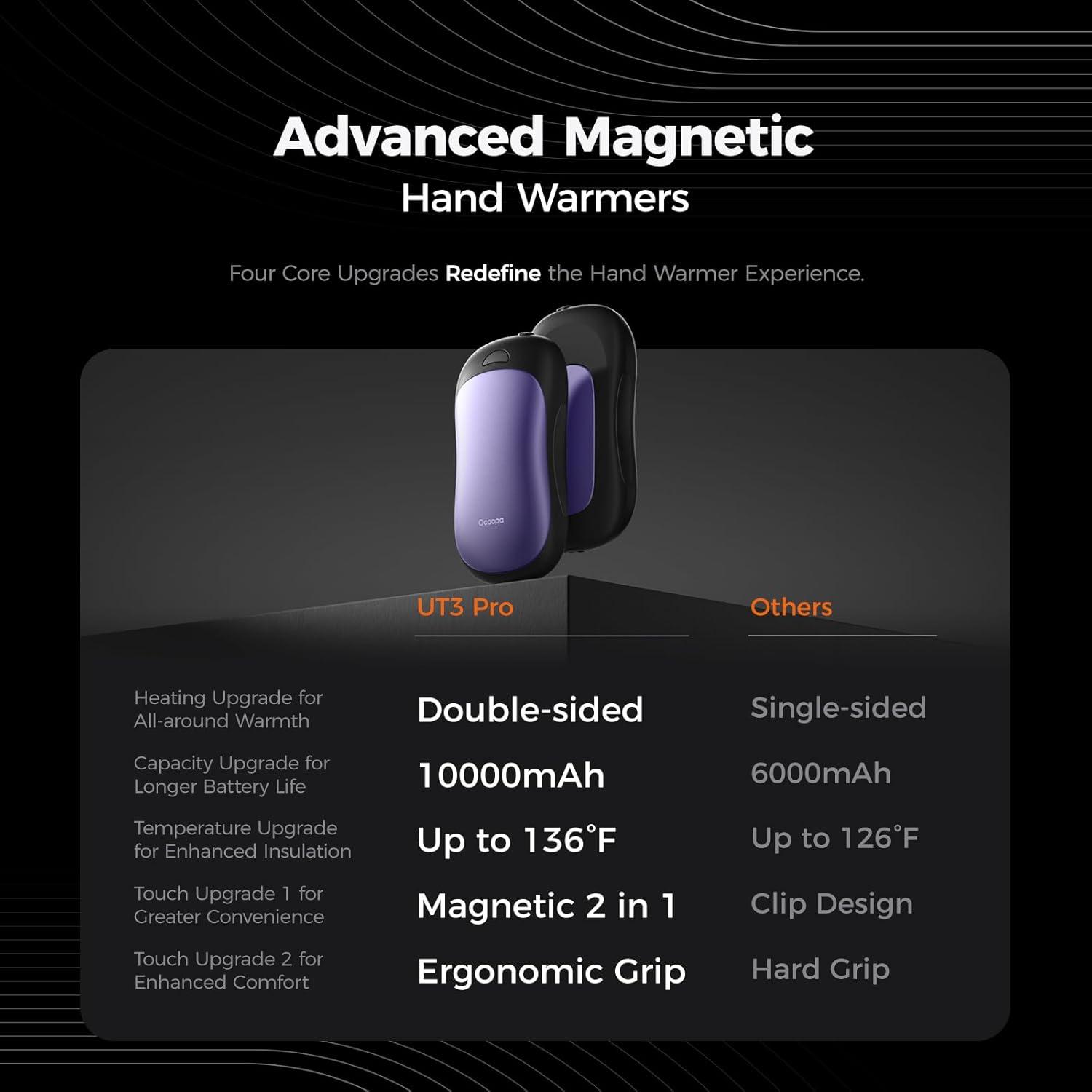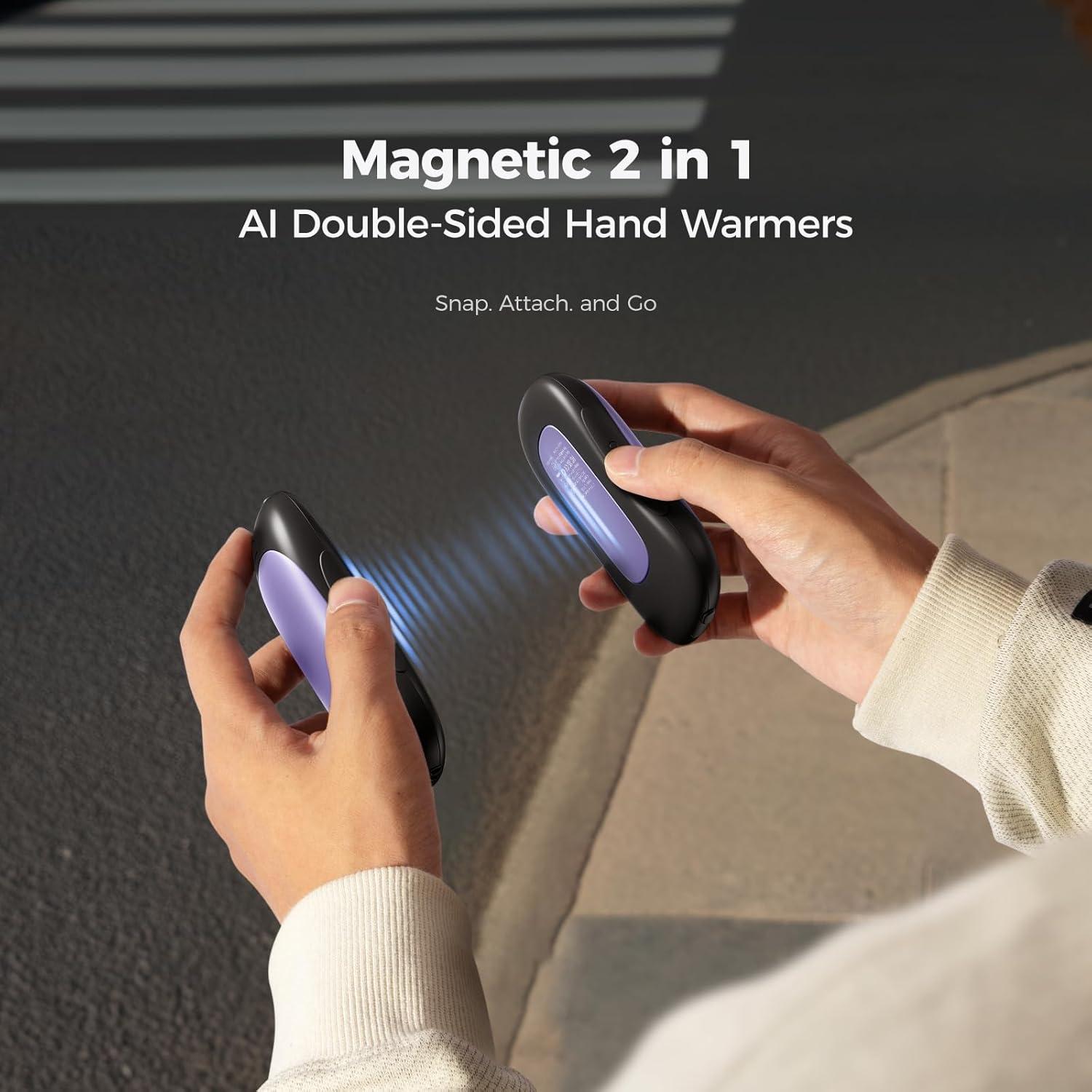 OCOOPA AI Smart Magnetic Double-Sided Heating Hand Warmers Rechargeable 2 Pack,10000mAh Electric Heater, Larger Warming Surface, 4 Heat Levels, Max 136°F, Men Gifts for Christmas,UT3 PRO(Royal Purple)