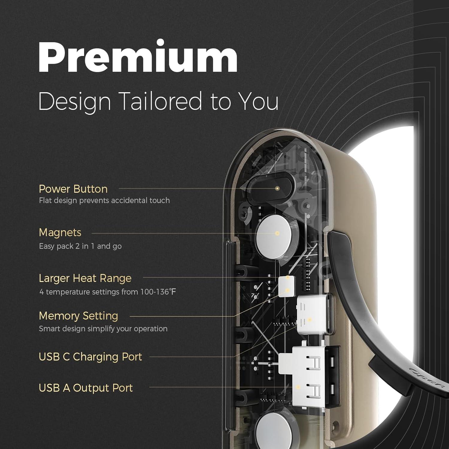 Best Warming Moments. Ergonomically comfortable. Aesthetically pleasing. MagTwins has four heating temperature settings that range from comfortable warmth to 137°F hot. Choose your most comfortable heat. We simplify your operation by remembering the previous heating level you selected and switching to it the following time.