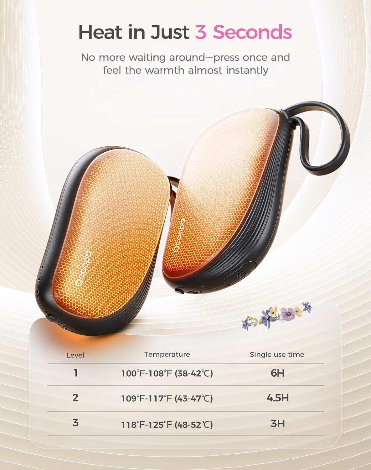 Trusted by 3 Million+ Users Worldwide: Join over 3 million people who rely on Ocoopa for safe, stylish, and dependable warmth. This gift set includes two hand warmers (non-magnetic) with integrated silicone lanyards, a dual USB-C charging cable, and a user manual—plus a 12-month warranty and 24/7 customer support. A thoughtful gift for loved ones—or yourself.