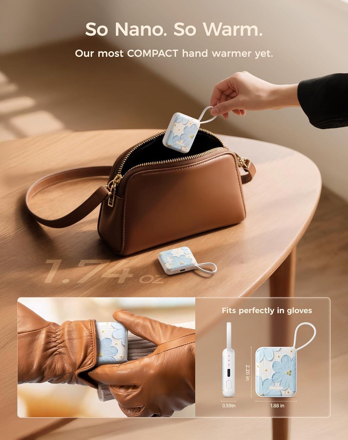 Ultra-Nano Size – Designed for Her Hands: This ultra-slim rechargeable hand warmer smaller than your palm, lighter than a lipstick. UT5 Nano fits perfectly in gloves, pockets—even wallets. Tailored for women who love warmth without the bulk.