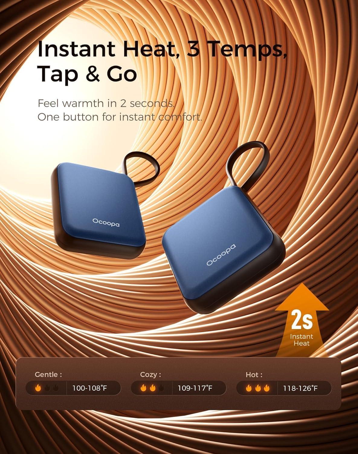 Easy Control: one-button design allows quick heating in 2 seconds; choose from three adjustable heat levels to match your comfort; user-friendly for parents, kids, or elderly; a must-have winter accessory for everyday convenience