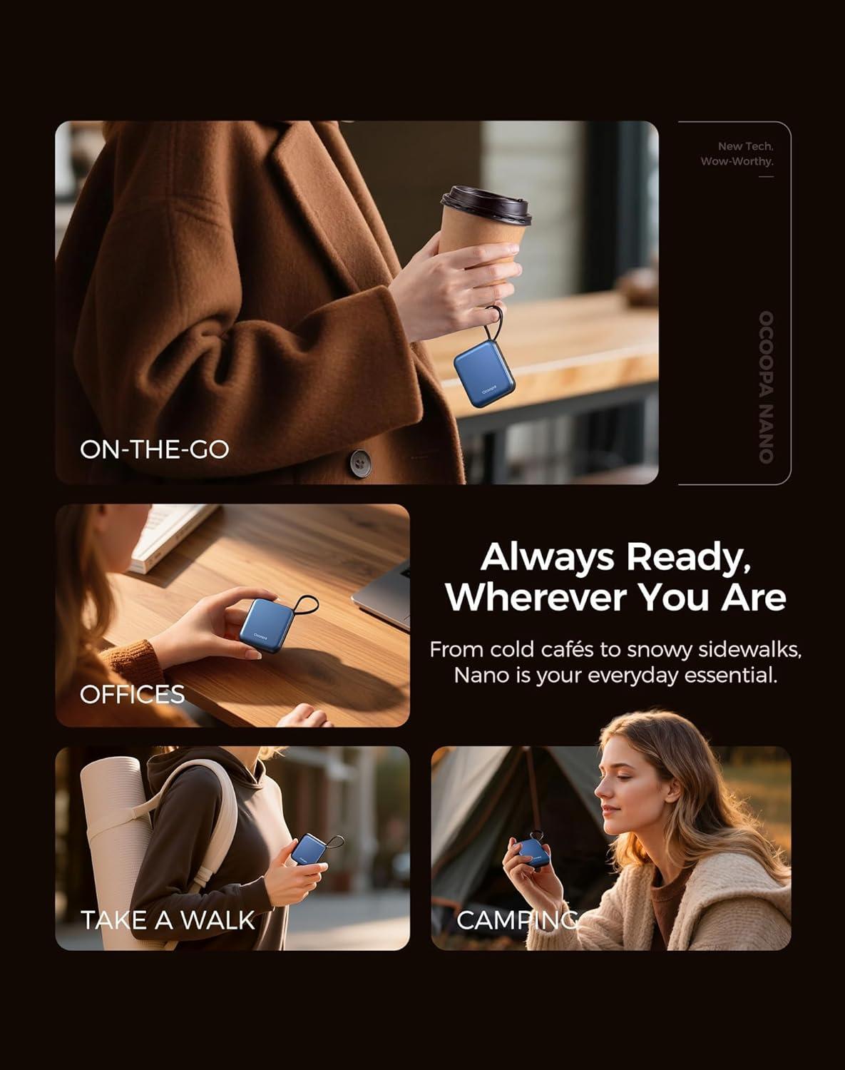 Ultra-slim and portable: UT5 Nano rechargeable hand warmer slips easily into jeans, gloves, or a small pocket; lighter than a phone, perfect for winter commuting, camping, hiking, or skiing; ideal for men, women, adults, or teens needing discreet warmth