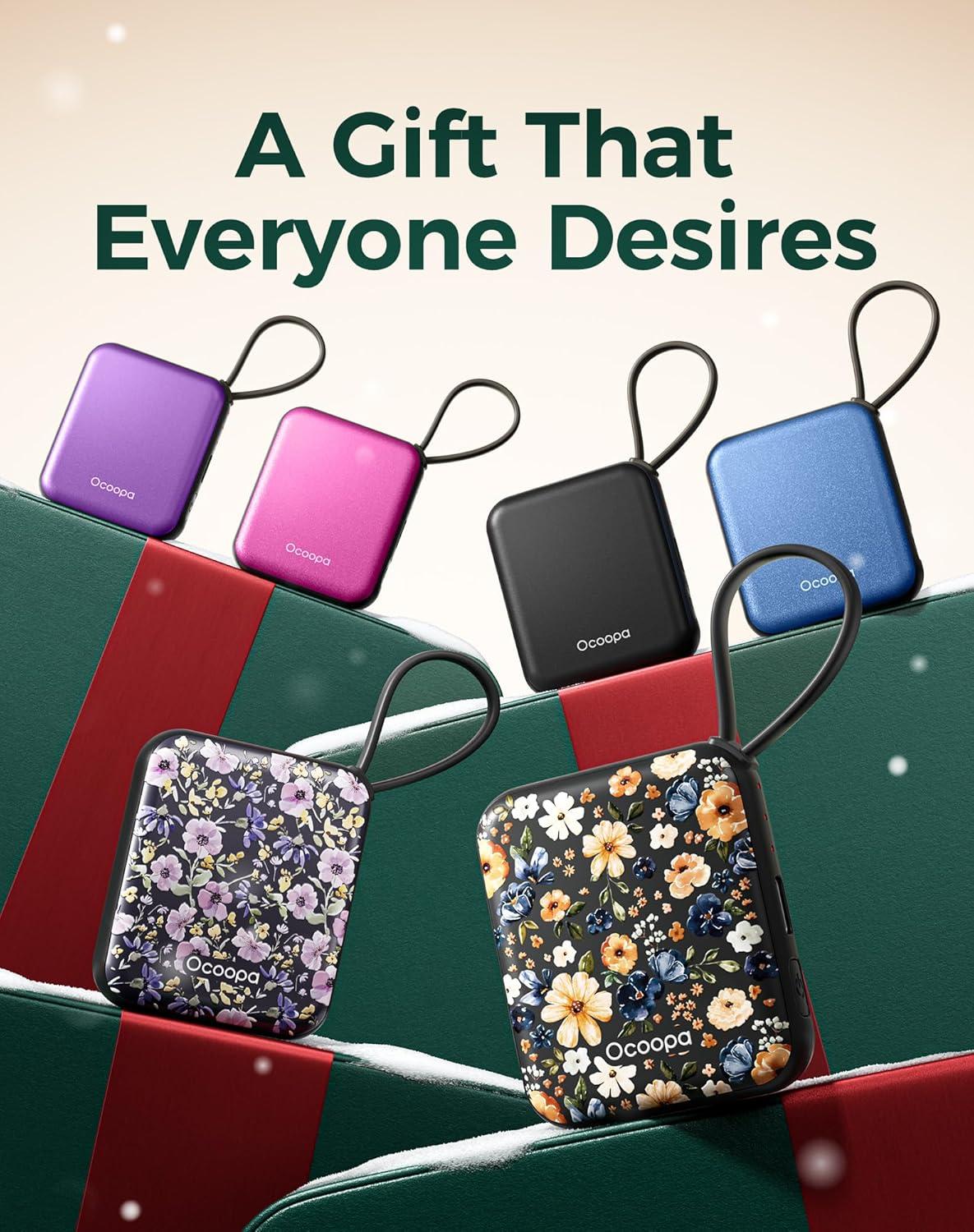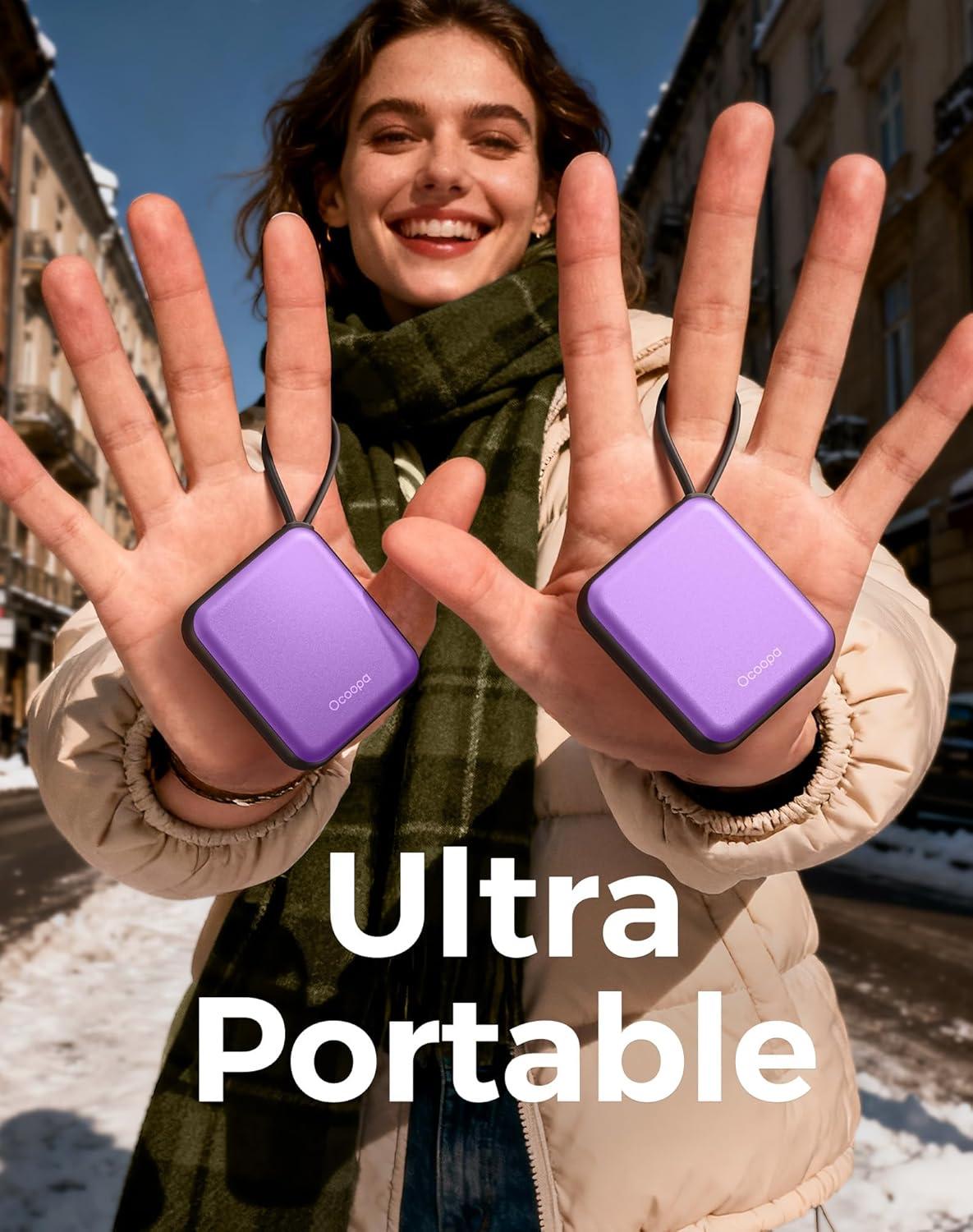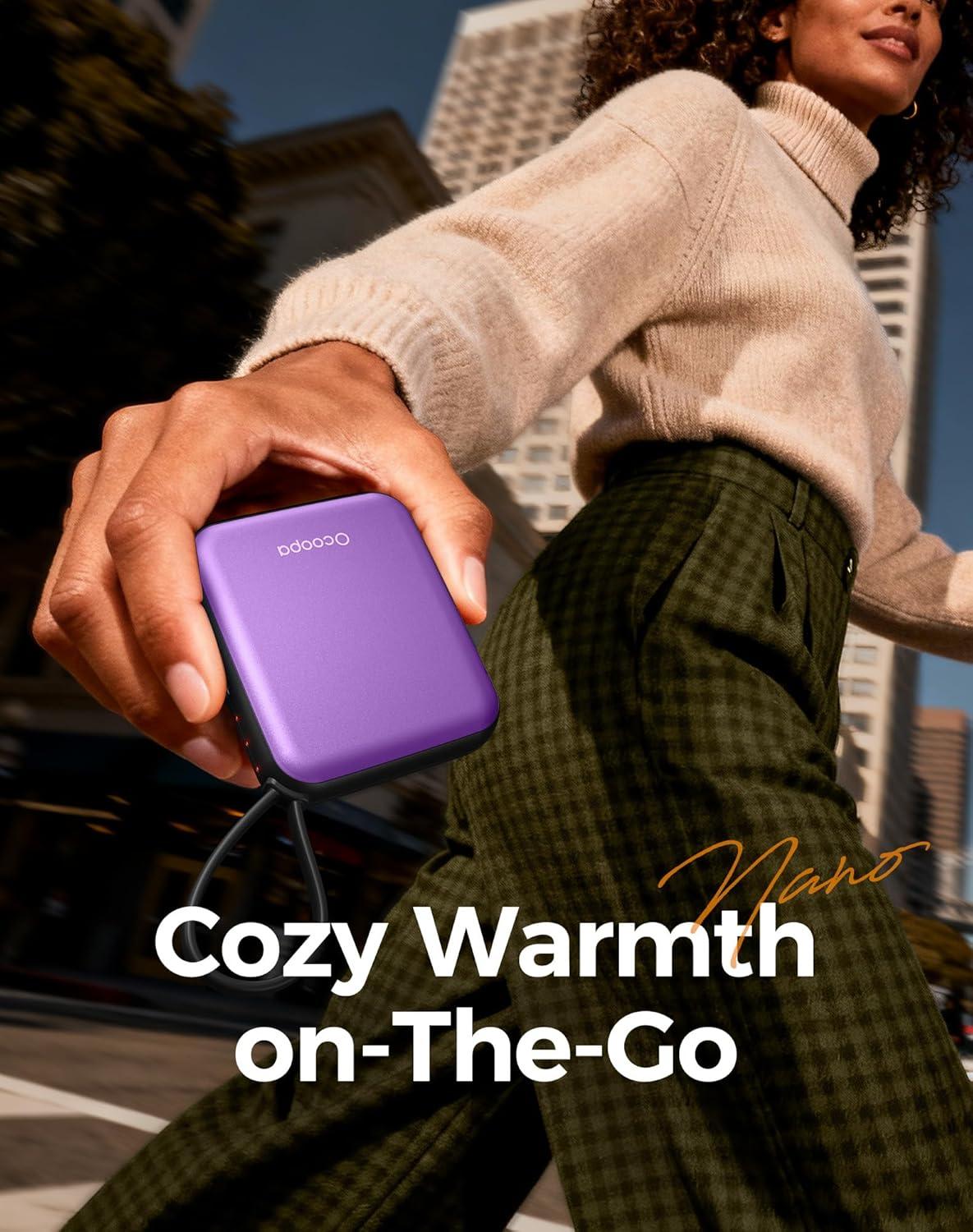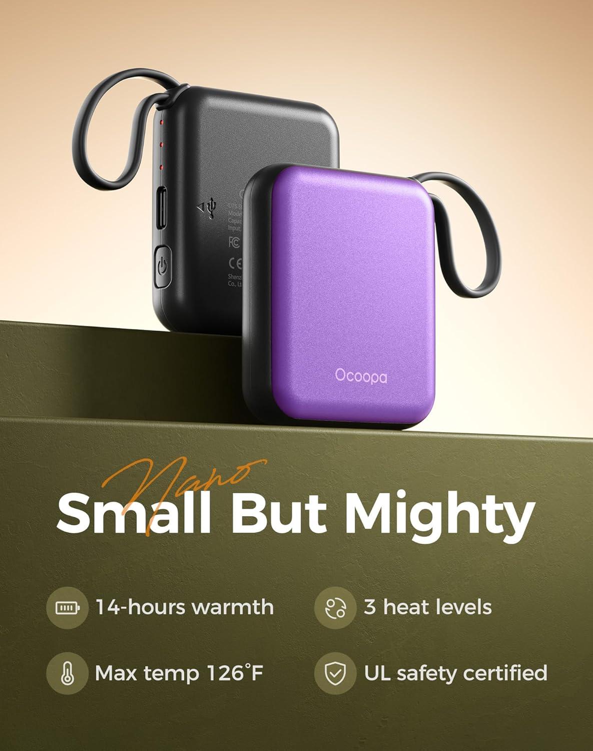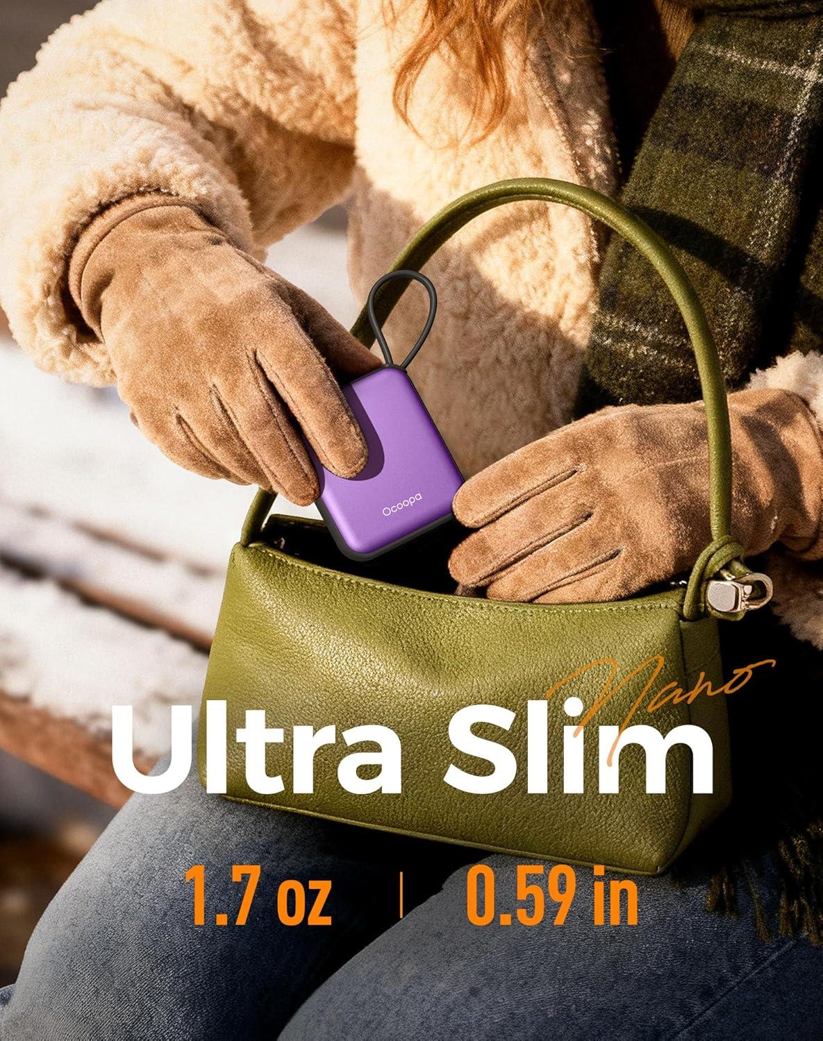 Ocoopa Hand Warmers Rechargeable UT5 Nano – Slim Electric Pocket Heater, Smart Temp Control, 14Hrs Battery, UL Safety, Artists in Bloom Design, Practical Gifts for Women, Christmas, Outdoor, Office(Purple)