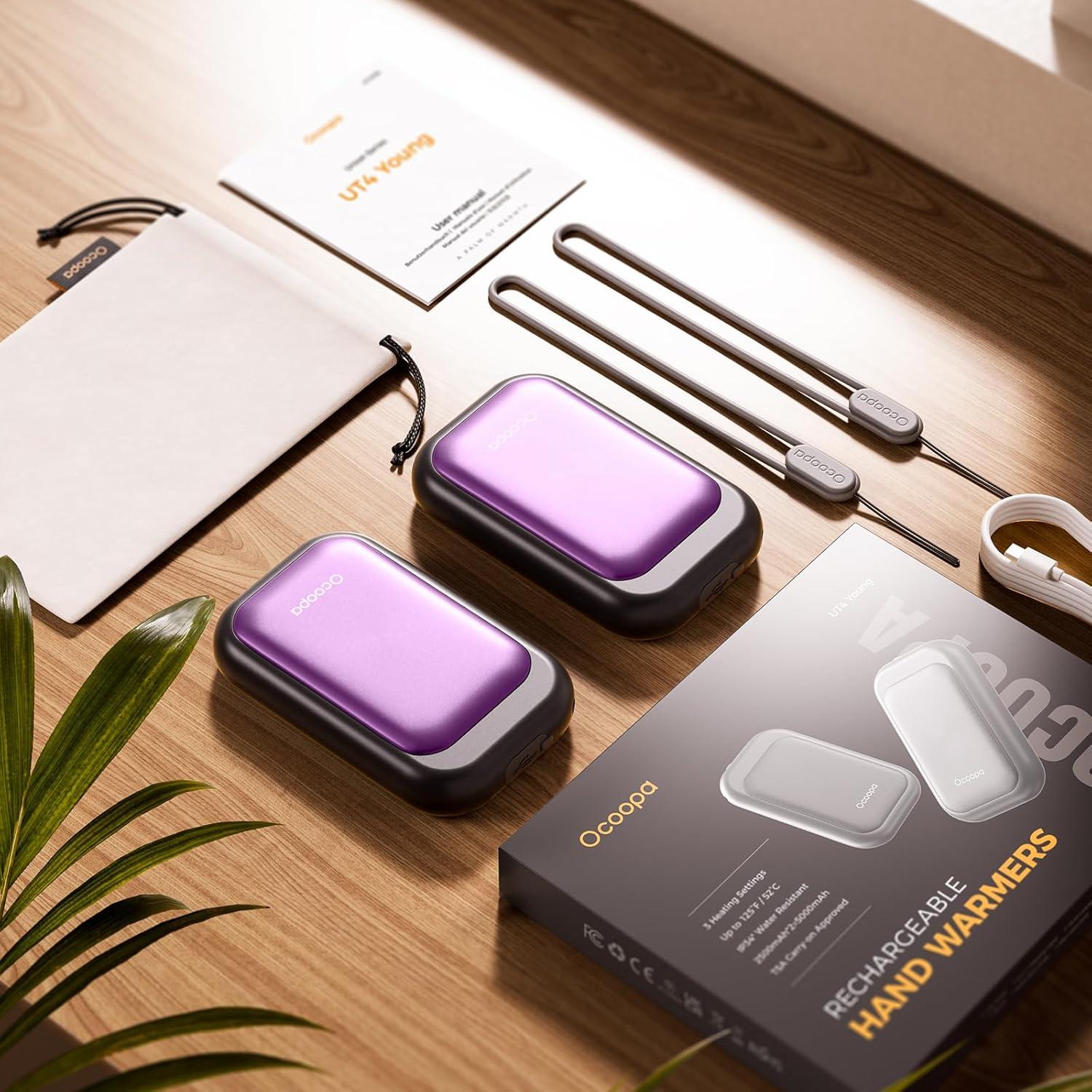 OCOOPA Magnetic Rechargeable Hand Warmers 2 Pack, Card-Style Electric AI Hand Warmers 5000mAh, Pocket Portable Hands Heater, UL Certified, for Men Women, Hunting Essentials, UT4 Young(Elegant Purple)