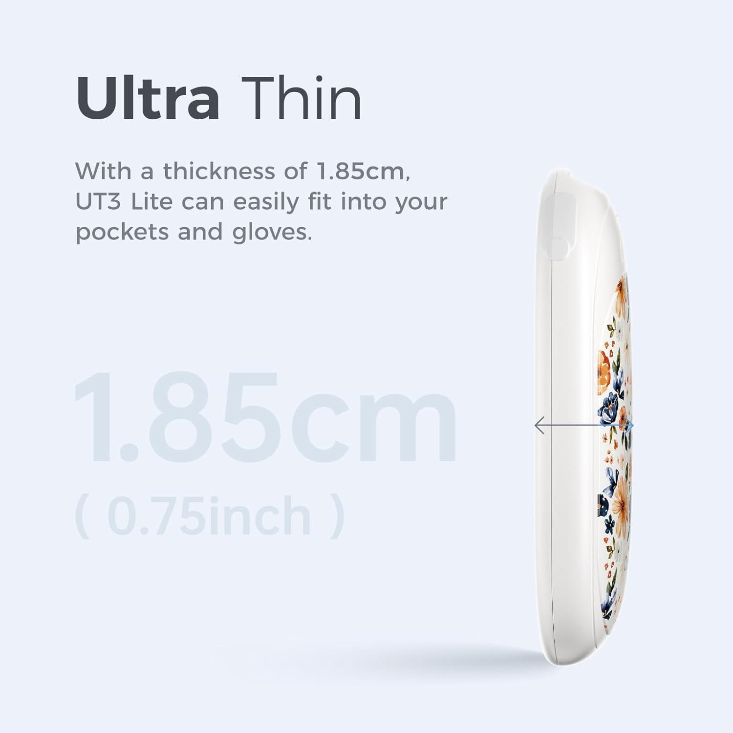 Ultra Light, Ultra Thin, Ultra Value: The UT3 Lite is super slim; Each hand warmer measures just 1.8cm when split, easily fitting into pockets and even slipping comfortably into gloves; And here's the surprise — it's lighter than your phone, a whopping 40% lighter