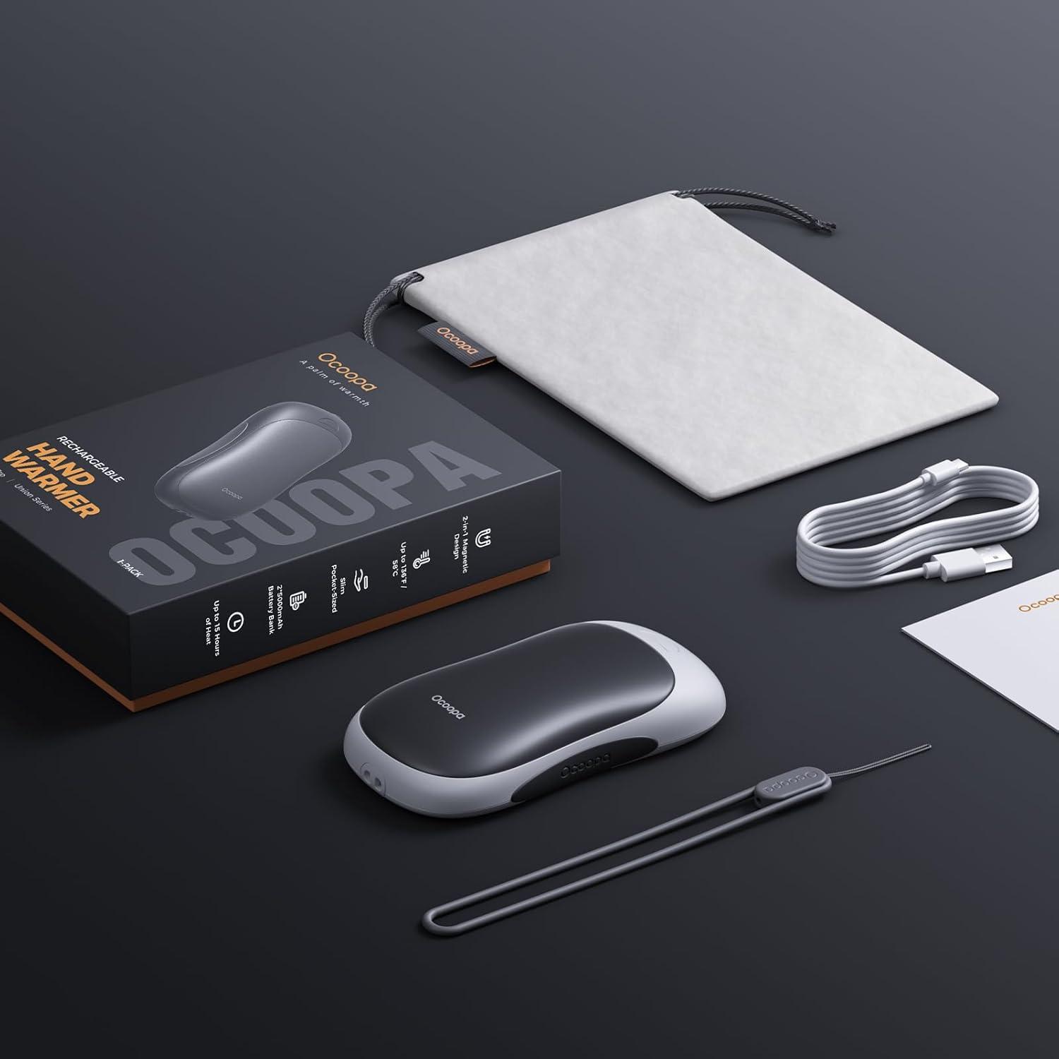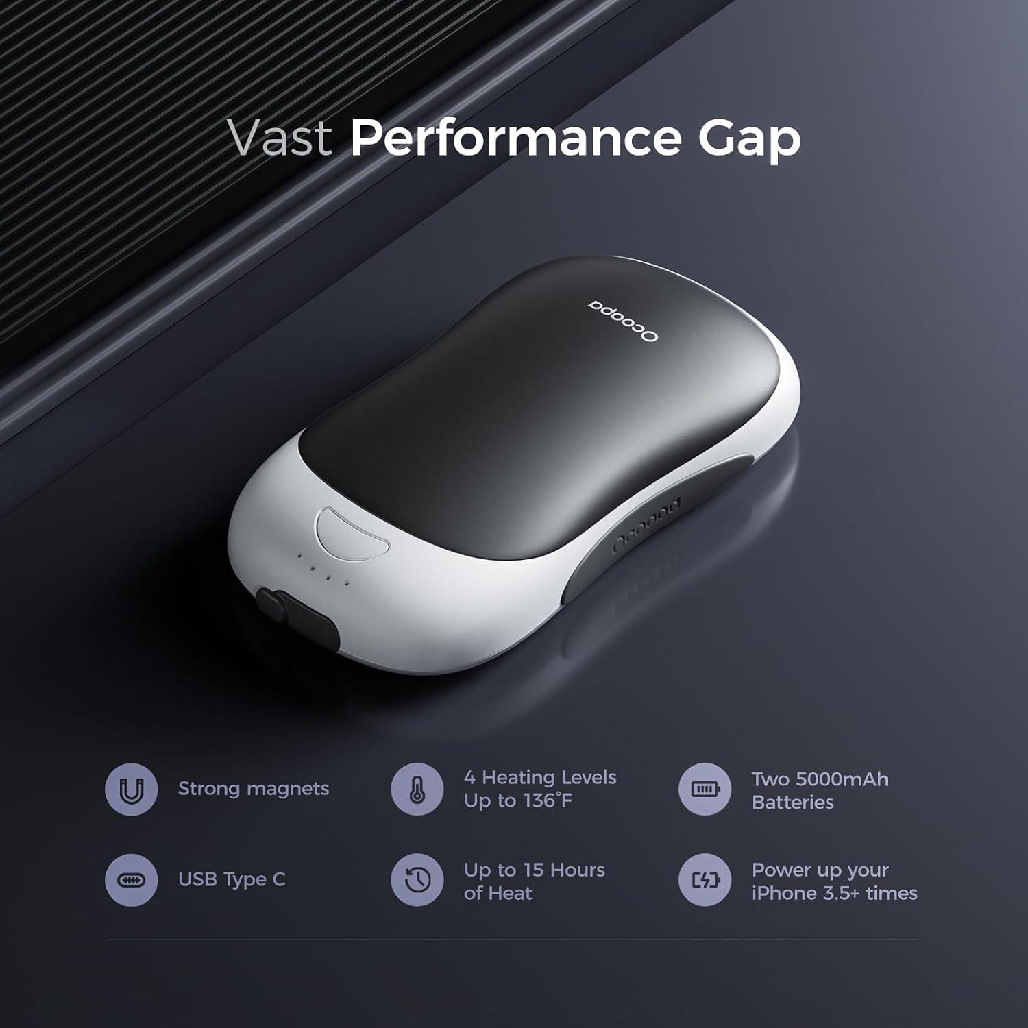 Longer Lasting Warmth: With an enhanced 5000mAh x2 rechargeable battery capacity and performance, enjoy 6-15 hours of continuous heat, ideal for all-day outdoor activities. This handwarmer also functions as a power bank, capable of charging your phone over 3.5 times.